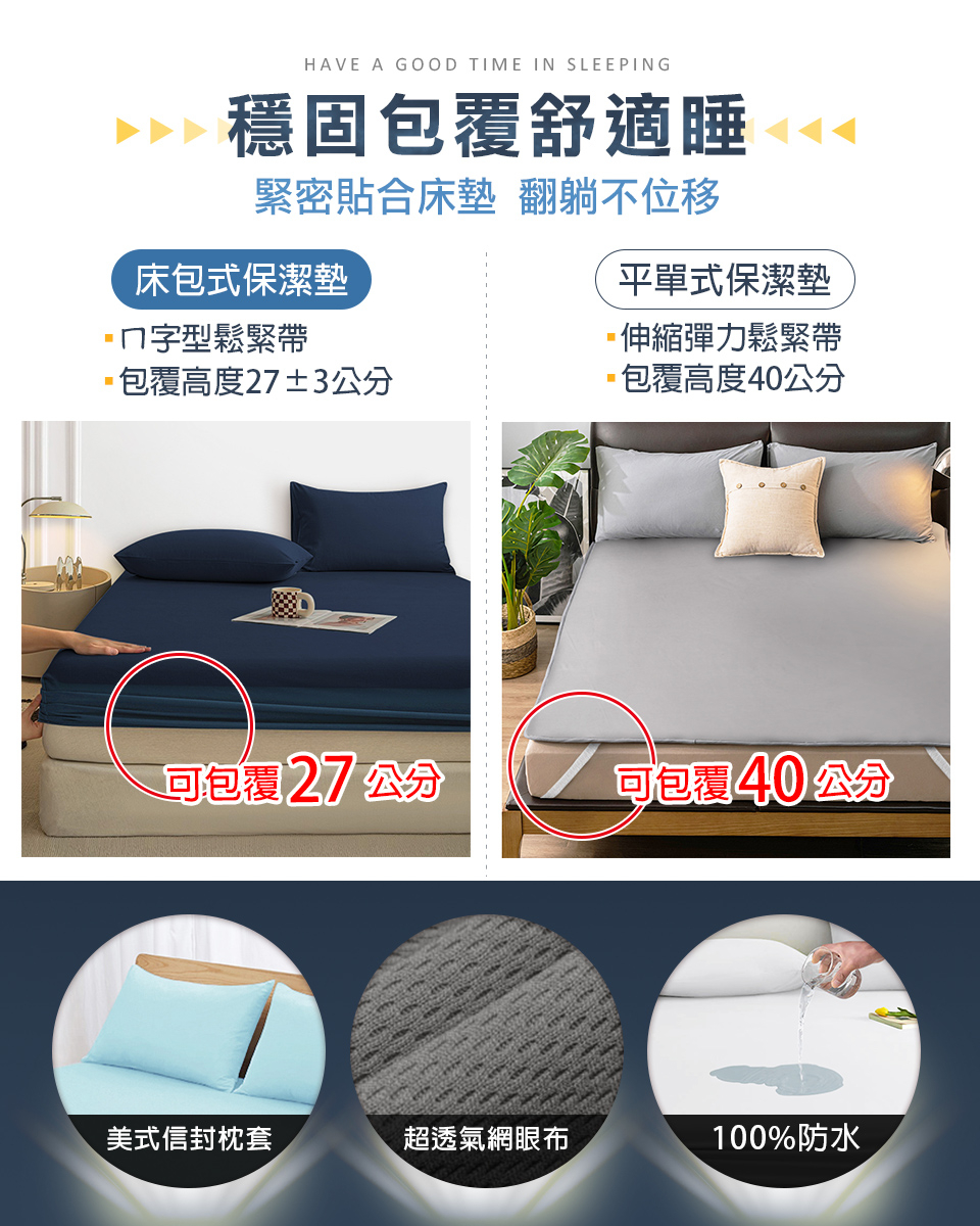 台灣製100%防水吸濕排汗床包式保潔墊(單人/雙人/雙人加大)