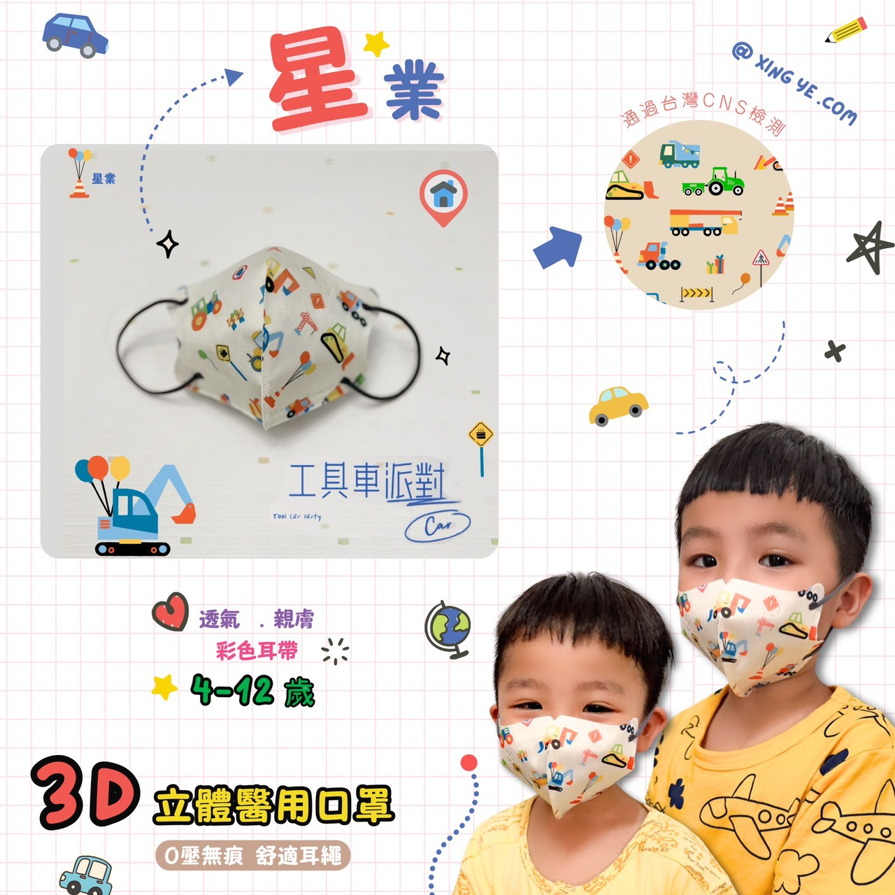 星業兒童3D立體醫用口罩30入