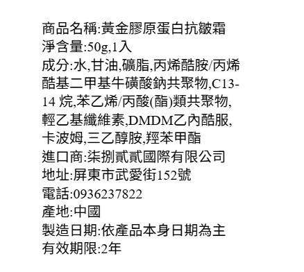 黃金膠原蛋白抗皺霜