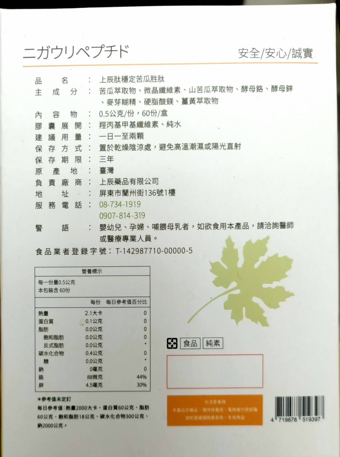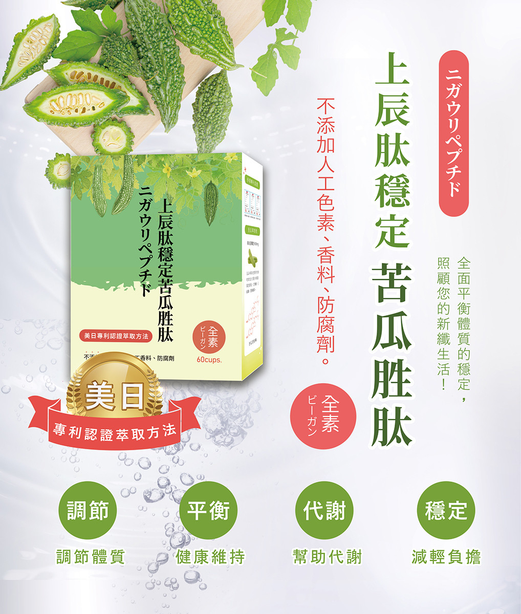 【上辰肽穩定苦瓜胜肽|全素配方|60顆/盒】幫助代謝,不易造成負擔