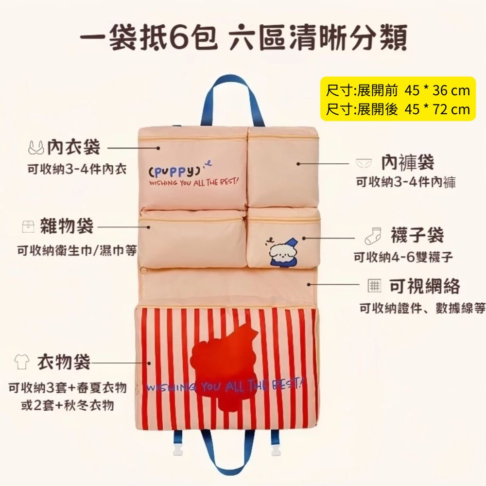 『六合一分隔收納』旅行收納袋
